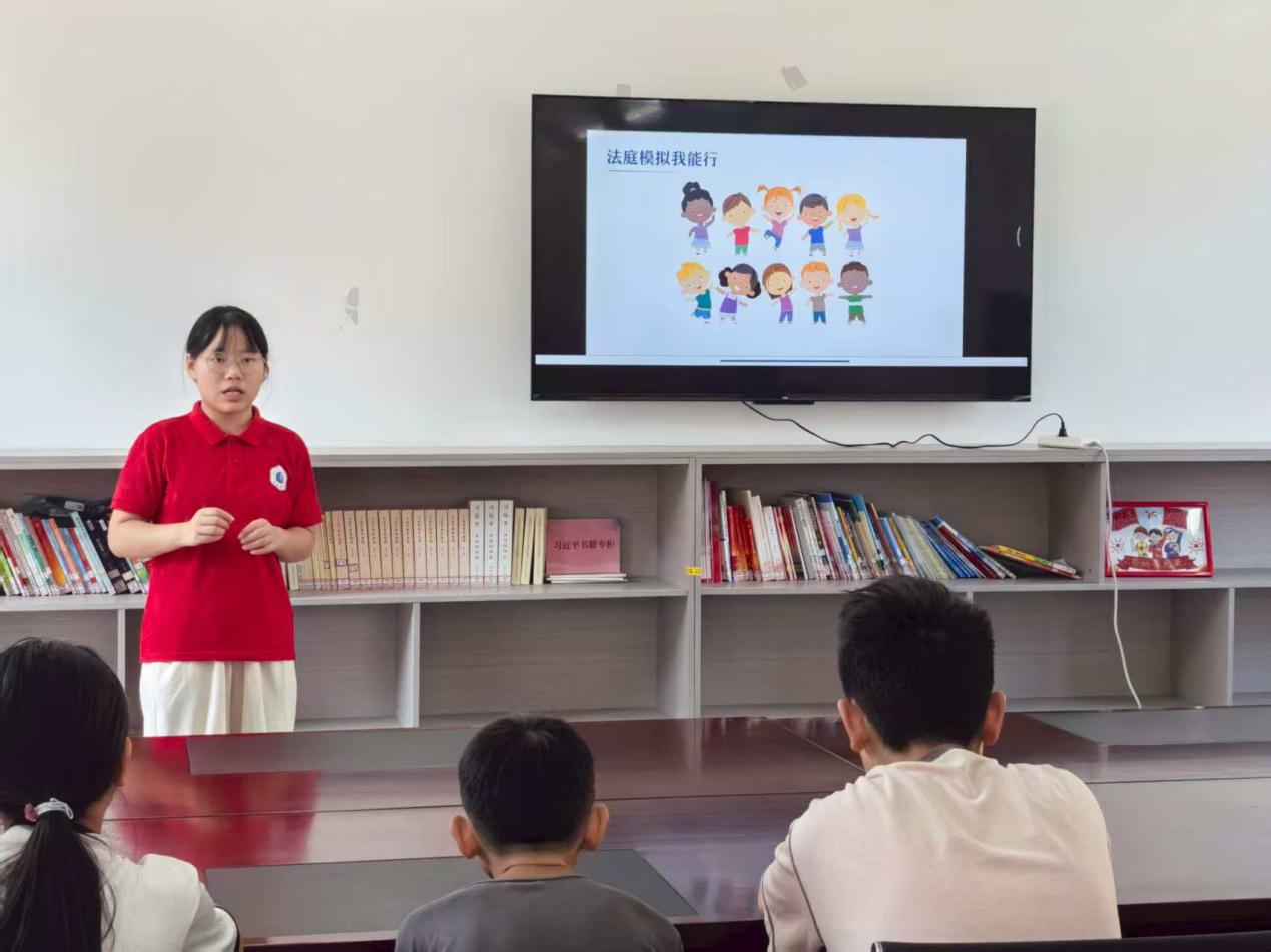 活动开篇,志愿者播放节奏明快的《刑法罪名口诀歌》。歌曲将《刑法》主要罪名提炼为通俗短句,搭配活泼旋律,把专业法律术语转化为孩子易记的内容,让孩子们在听歌中轻松了解刑法知识,实现法律教育潜移默化。