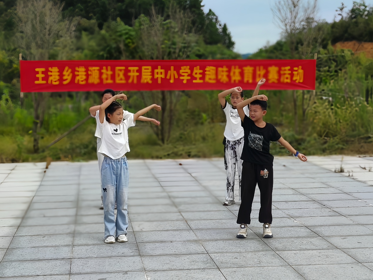 随后,一场热闹的乡村运动会精彩上演。开场的呼啦圈操点燃了全场热情,孩子们手转彩圈、步伐整齐,赢得围观村民阵阵掌声。接着,跳绳、拔河等项目依次进行,孩子们在各个项目中尽情释放活力,收获了友谊和欢乐。